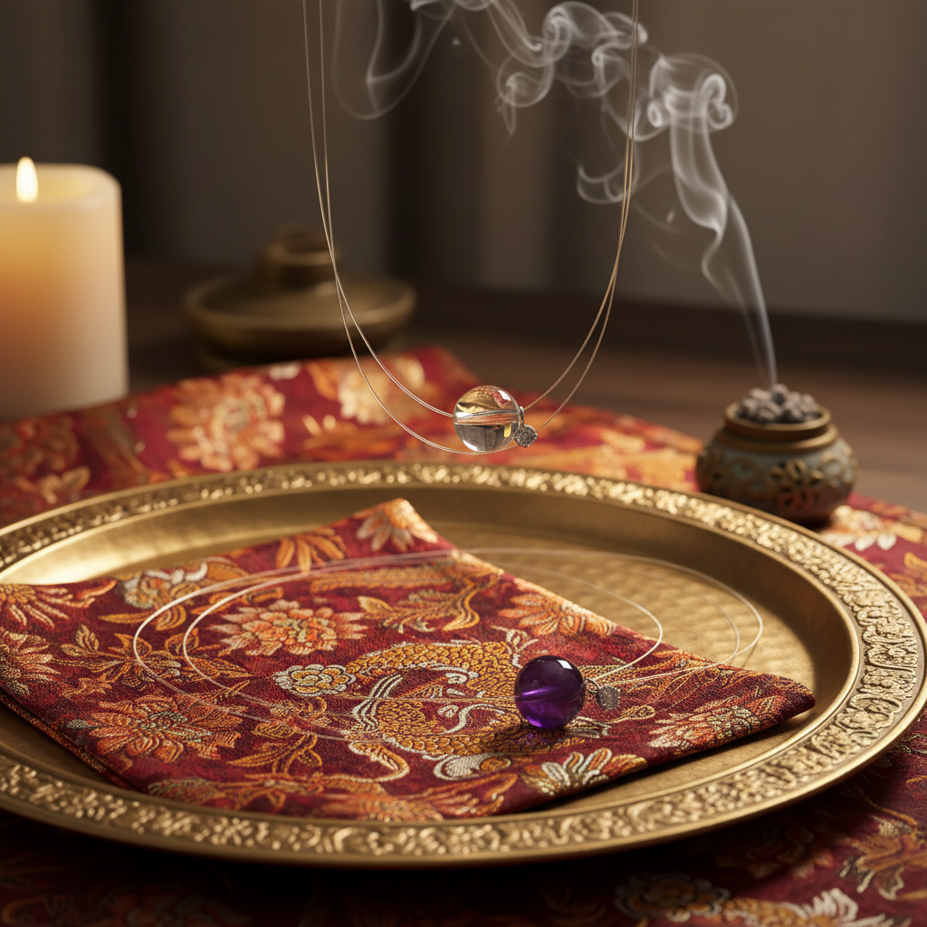 The deep violet of Amethyst evokes sophistication and calmness, while the clarity of Clear Quartz adds a touch of purity and brilliance. Together, they form a balanced composition of modern minimalism and timeless elegance.